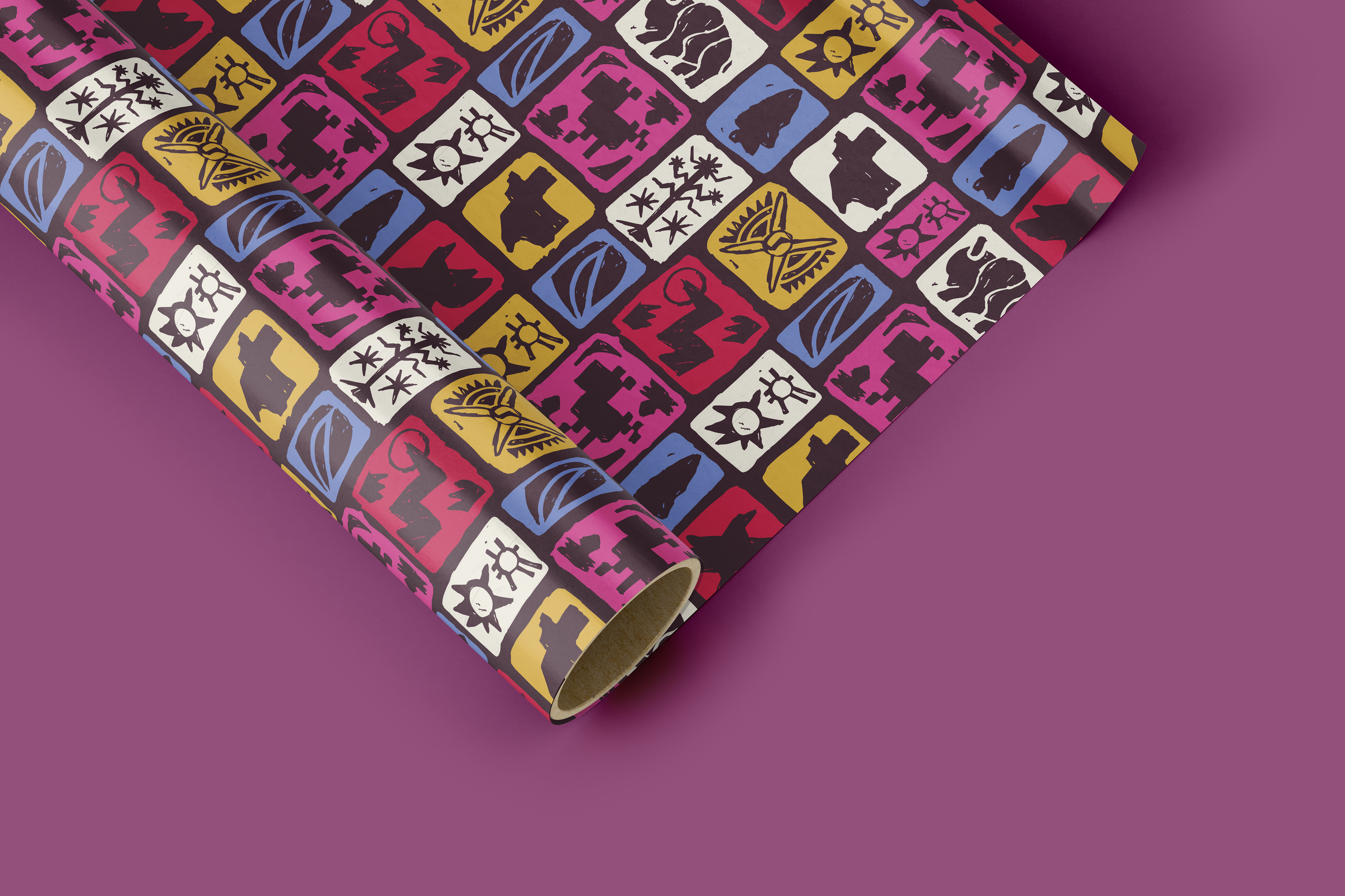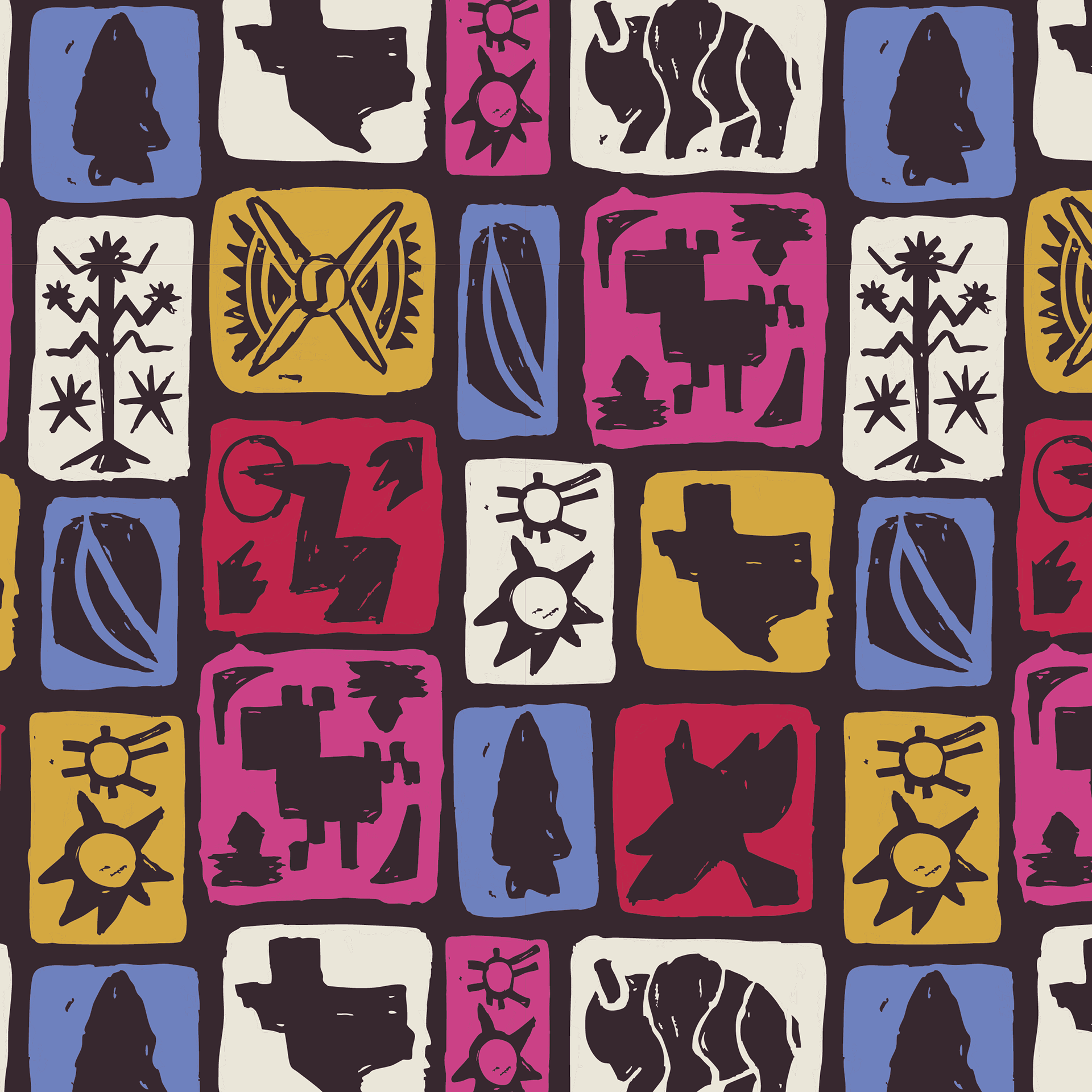 This bold pattern design celebrates the rich cultural tapestry of Texas through symbolic motifs inspired by its Indigenous tribes. By studying elements from Kickapoo, Alabama-Coushatta, Coahuiltecan, Apache, Karankawa, Caddo, and Comanche artwork, I crafted a visual system that reflects themes of community, nature, and storytelling. Blending historical influence with modern design, the piece honors the artistic legacy that helped shape Texas’s identity while bringing fresh energy to a timeless narrative.