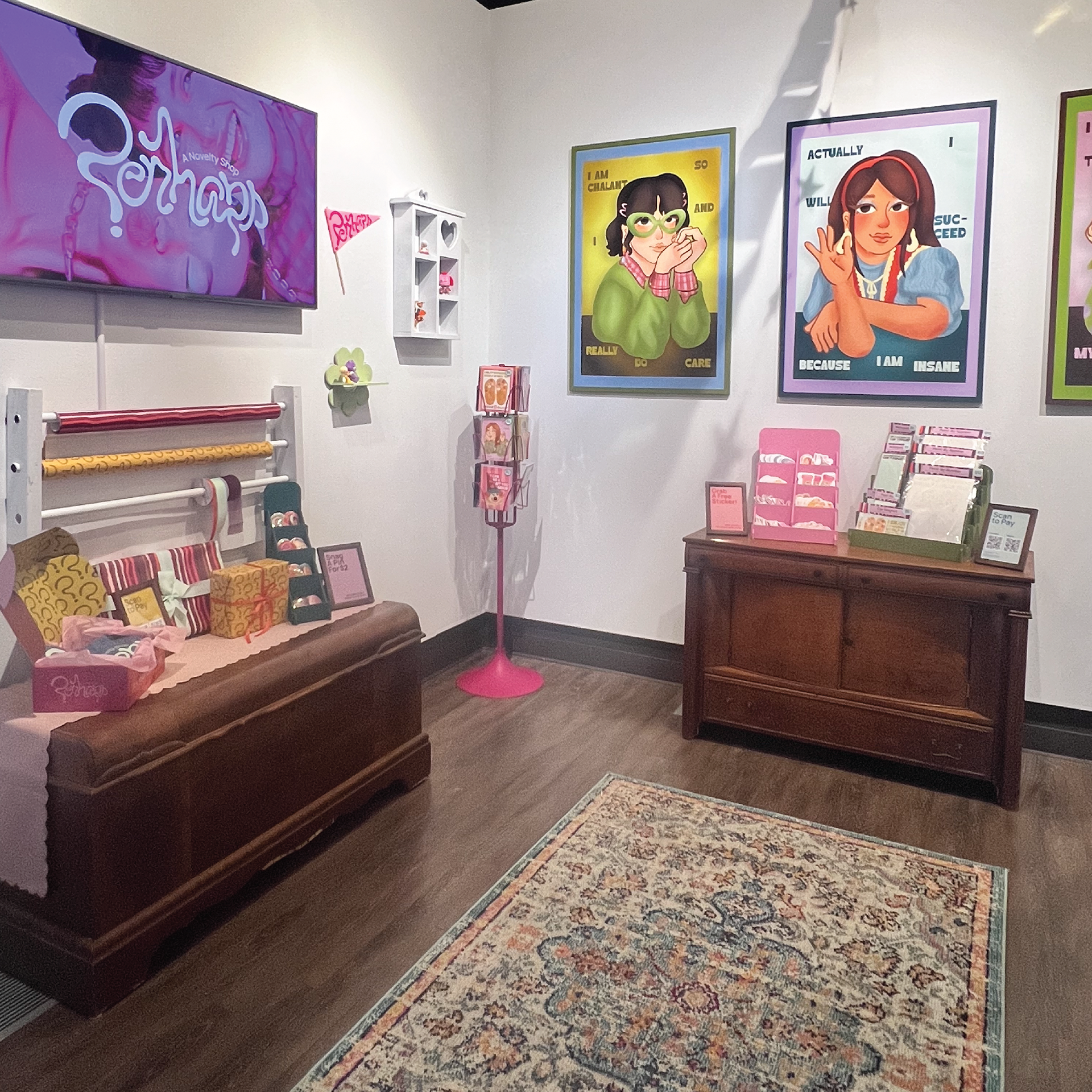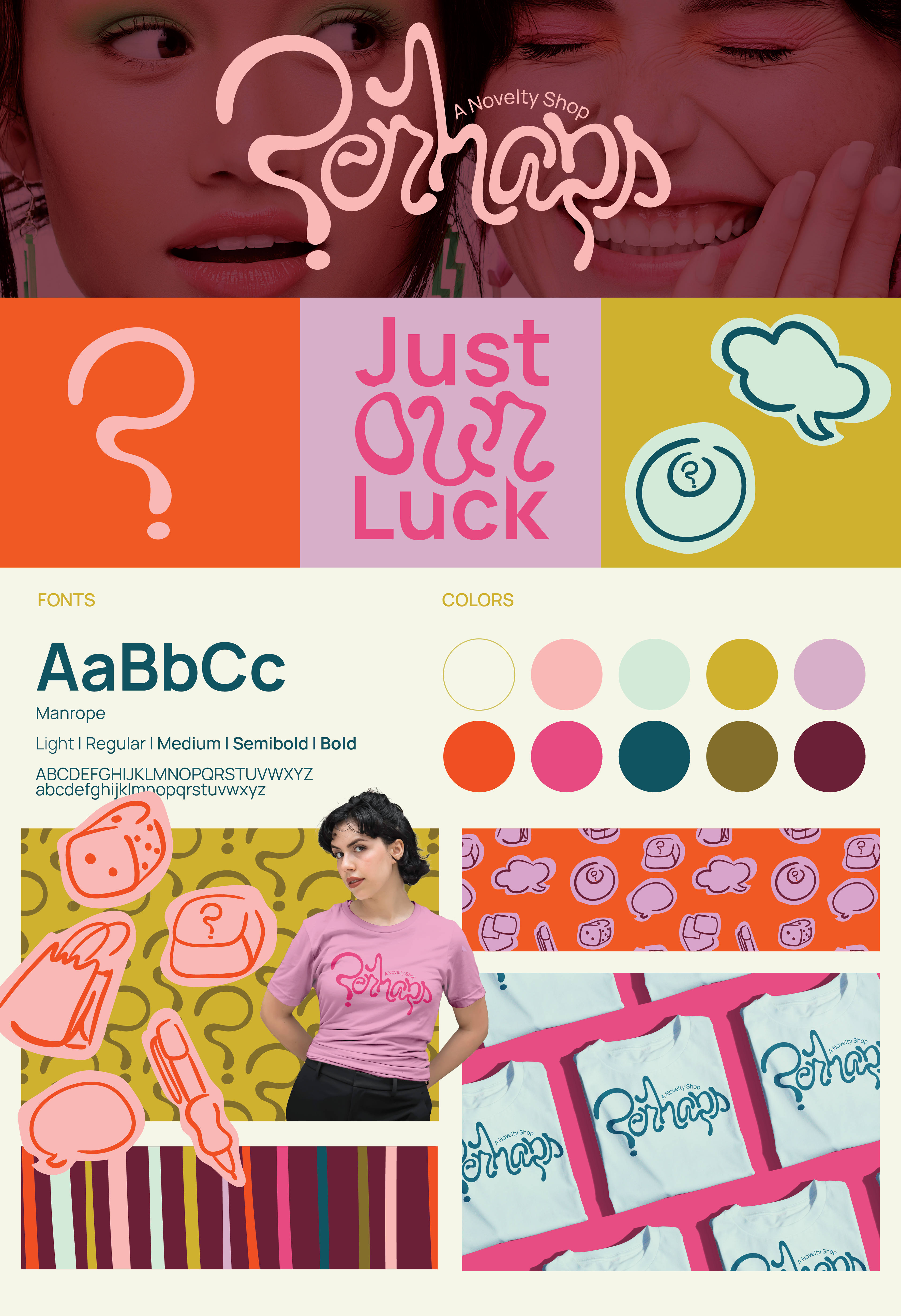 Perhaps is a small novelty store full of gifts, trinkets, and artsy goods for any occasion. Inspired by kitschy gift shops, with a crafty flair, the products are all designed by creatives. If you are looking for a way to treat yourself or others, you’ll always be in luck at Perhaps! The whimsical branding, hand drawn elements, and smooth color palette make this store pop! This project was my Senior Capstone Exhibition and was brought to life! Special thanks to Olivia Kohler for allowing me to use her photos for my project!